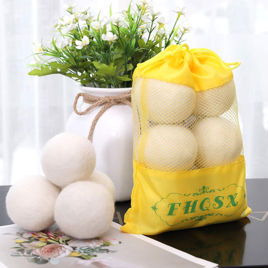 Wool Dryer Balls 2.79" 6 Pack, 100% New Zealand Reusable Fabric Softener (White)