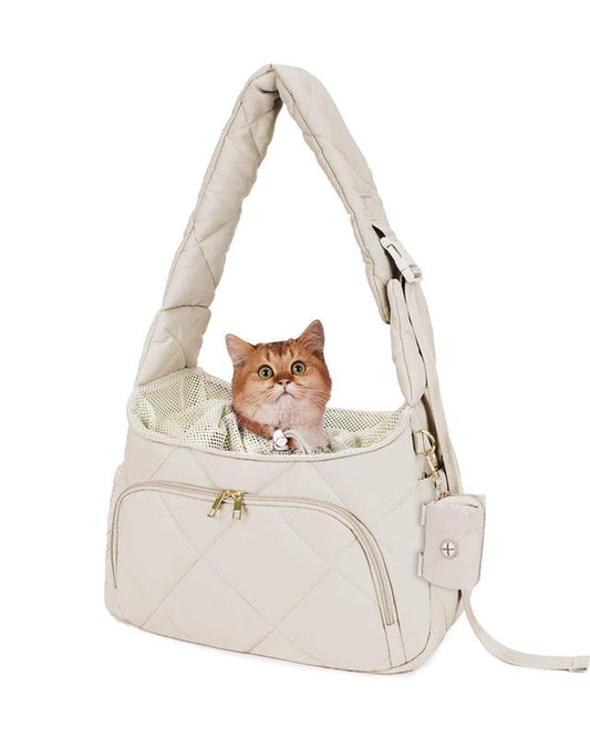 Pet Carrier Sling Puppy Carrier with Storage Pocket, Fluffy Quilted Breathable for Carry Small Dogs Cats with Travel Safety Harness