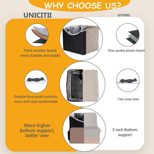 Dog Car Seat for Small Dogs, Elevated Dog Booster Seat Pet Travel Carrier Bed for Car with Adjustable Straps Lookout Pet Car Booster Seat for Small Dogs Cats