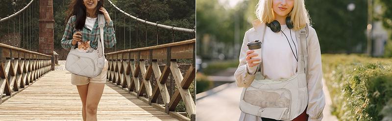 - 【Thoughtful Design】1.Water-resisant material, soft and comfortable puffy fabric. 2.The bottom has a removable soft fleece pad and a large area ofbreathable and bite-resistant mesh material. 3.It is equipped with a built-in safety belt to prevent pets from running out. 4.The pockets on both sides can store food, and some necessary accessories. 5.Extra Poop Bag Holder for independent storage.(Also hold other items)