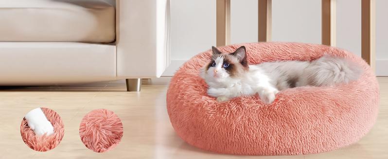 - This bed is made of plush faux fur fabric, creating a quiet and soothing atmosphere. Pets that take a nap in this blessed bed feel calmer and less anxious.