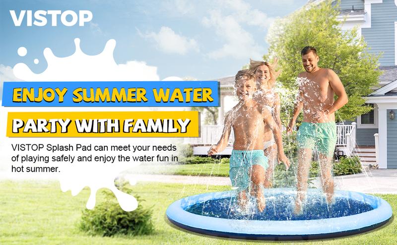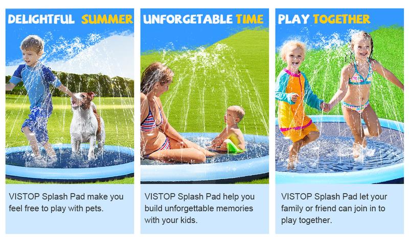 - 【UPDATE UPGRADE】: Heavy Duty splash pads BEST for dogs to play water sprinkler pool. VISTOP splash pad without BPA and phthalates is fun water toys. Let Boys and Girls get close to nature and enjoy the wonderful summertime.