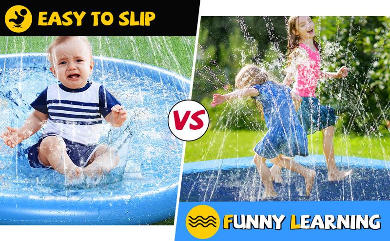 - 【NON-SLIP DESIGN】: When playing with water on splash mat, Boys and Girls are easy to fall and be injured. The non-slip texture is designed to increase grip and allow children to enjoy the water Sprinkler in the backyard while ensuring safety.