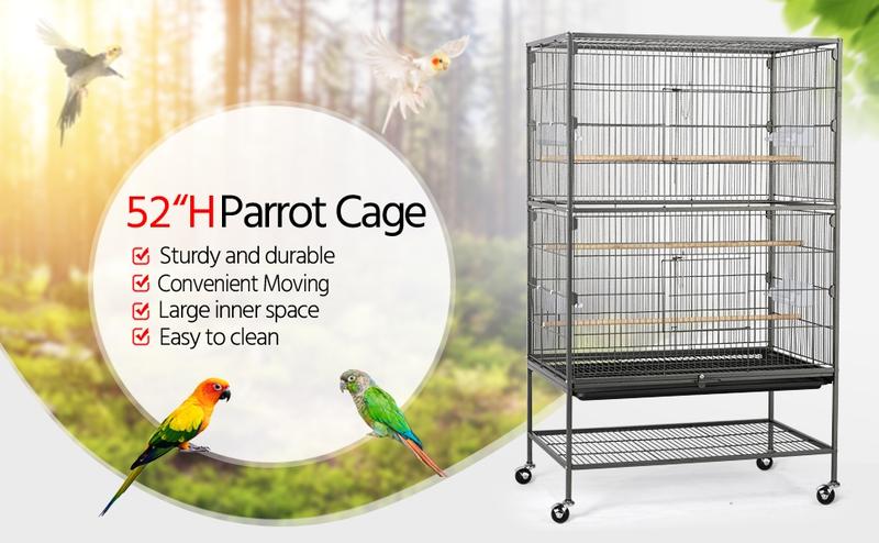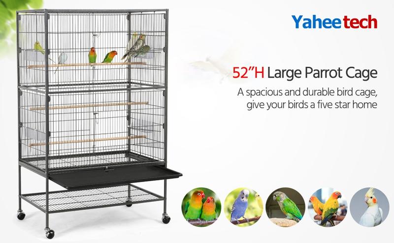Yaheetech 52" H Large Rolling Parrot Cage for Lovebirds and Cockatoos - Ultimate Comfort with 3 Perches, 4 Feeders, and Extra Storage!