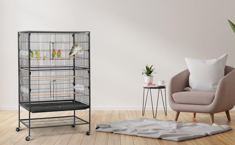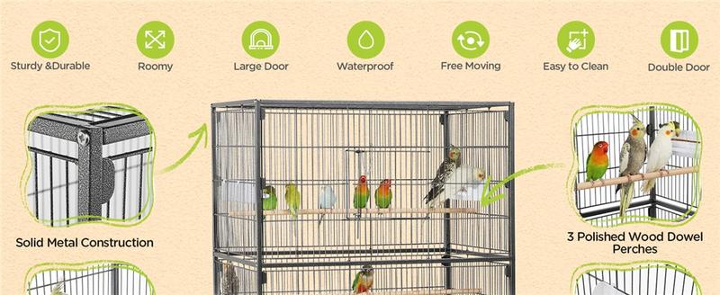 5. 【Safe & Secure】 The two front doors of this large bird cage are secured with latches to prevent your smart escape artists from opening the doors and keep them safe in the cage when you are not around