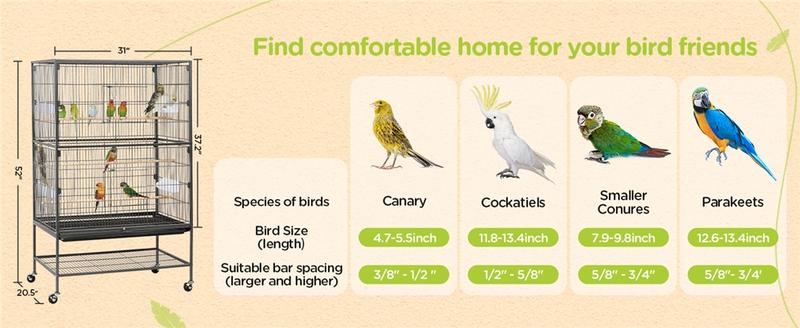 2. 【Spacious Home For Small/Medium Birds】 This large birdcage offers your feathered friends a roomy living space of 31″ L × 20.5″ W × 37.2″ H. The 5/8″ bar spacing is crafted to provide a safe habitat for various small to medium-sized birds, such as lovebirds, cockatoos, small conure cockatiels, and medium-sized parakeets